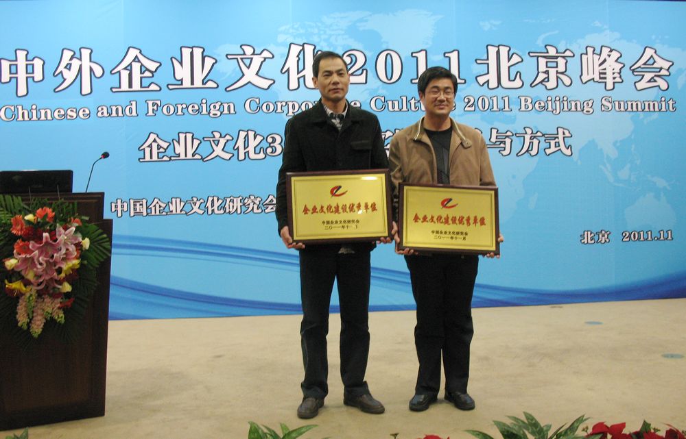 “企業(yè)文化30年:實踐路徑與方式—中外企業(yè)文化2011北京峰會”于11月12—14日在北京隆重舉行,中建、中石化、中石油、首鋼、聯(lián)想等700多家企業(yè)參會。我公司以獨特的“水文化”榮獲“2011年度全國企業(yè)文化建設(shè)優(yōu)秀單位”, 朱延安同志榮獲“2011年度全國企業(yè)文化建設(shè)先進工作者”。