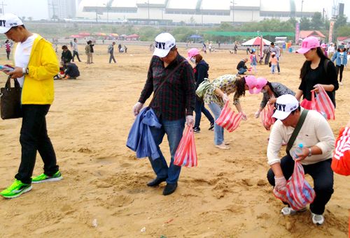 在活動現(xiàn)場,志愿者手持垃圾袋沿在海一方海岸一線步行近三公里,沿途撿拾散落在沙灘、石礁、堤壩上的垃圾。參與的員工在以實際行動感染游客的同時,并向游客宣傳供水知識,提高環(huán)保意識,在贏得大家普遍贊嘆的同時,也是一次展示供水企業(yè)的社會形象的機會。