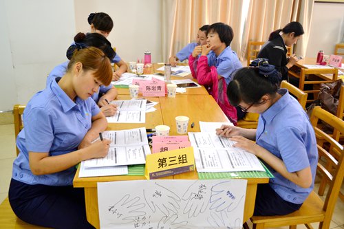 為進一步強化員工的服務(wù)意識,規(guī)范服務(wù)行為,提升抱怨投訴處理能力,6月25日至27日,公司組織了為期兩天半的《專中有范-窗口人員服務(wù)標(biāo)準(zhǔn)化強化訓(xùn)練》的課程培訓(xùn)?头行、新海營業(yè)所、連云供水公司、新海管線所等部門窗口、熱線、投訴業(yè)務(wù)處理50余人參加培訓(xùn)。