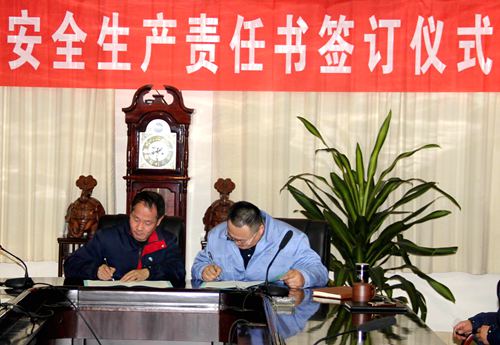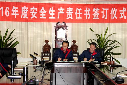 為加強安全生產(chǎn)管理,認真貫徹落實安全生產(chǎn)責任制,2016年1月18日,公司舉行2016年度安全生產(chǎn)目標管理責任書簽訂儀式。侯洪峰總經(jīng)理分別與各單位、部室的第一負責人簽訂2016年度安全生產(chǎn)目標管理責任書。