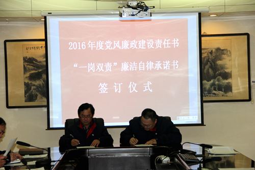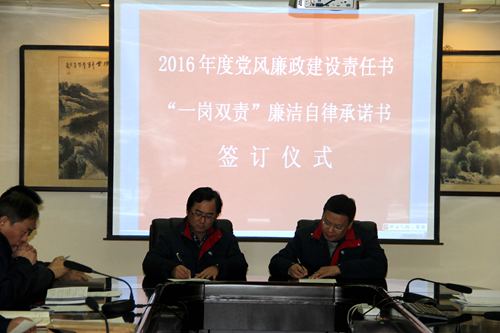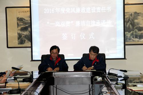 公司黨委副書記王斌分別與9名黨支部書記簽訂了2016年度《黨風廉政建設責任書》和《“一崗雙責”廉潔自律承諾書》。責任書對公司黨風廉政建設的目標責任、責任范圍、責任內(nèi)容、責任追究等作出明確規(guī)定,保證公司黨風廉政建設工作的貫徹落實。