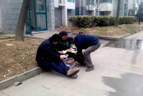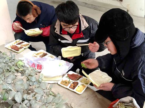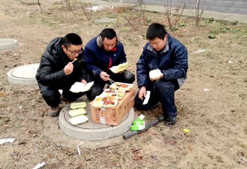 現(xiàn)場的維修人員,為加快施工進度,自從開始搶修以來,就放棄了家里那熱乎乎的美味佳肴,而僅僅是一份拿到手就被冰冷的寒風凍透的盒飯。!