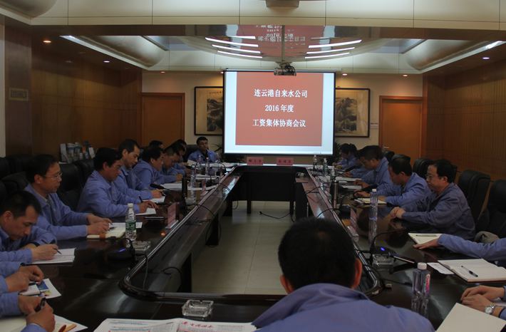 4月15日和18日,在公司第一會(huì)議室先后召開(kāi)了連云港自來(lái)水公司2016年度工資集體協(xié)商第一次和第二次會(huì)議。以公司總經(jīng)理侯洪峰為首席代表的公司方代表與以公司工會(huì)主席朱延安為首席代表的職工方代表就《2016—2017年度工資專項(xiàng)集體合同(草案)》的相關(guān)條款進(jìn)行了友好的溝通和協(xié)商,并達(dá)成共識(shí)。