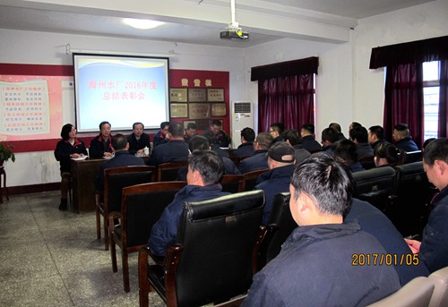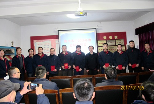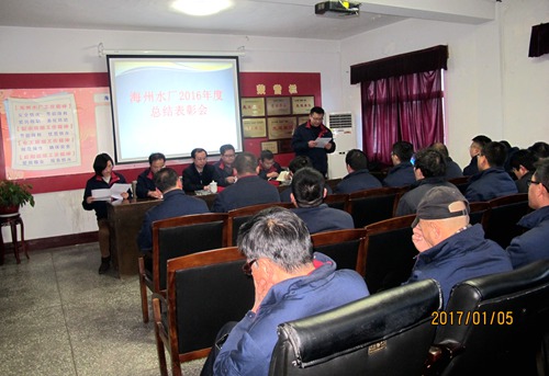 2017年1月5日,“海州水廠2016年度總結(jié)暨表彰大會”在水廠辦公樓二樓會議室隆重舉行,除運行班值班人員外,水廠其他40余名員工參會,公司副總經(jīng)理包偉、安全管理部部長張義東、運行管理部部長助理陶建強應(yīng)邀出席,并為海州水廠2016年度工作突出的先進班組和個人進行頒獎。
