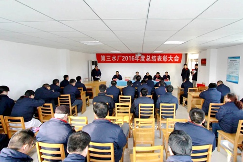 2017年1月11日下午,第三水廠2016年度總結(jié)表彰大會(huì)在第三水廠培訓(xùn)中心隆重召開,公司副總經(jīng)理包偉、安全管理部部長張義東以及第三水廠員工共計(jì)60余人參加了會(huì)議。