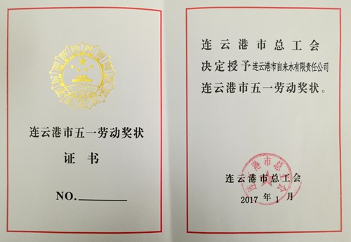 近日,從市總工會傳來喜訊,連云港市自來水有限責(zé)任公司榮獲“連云港市五一勞動獎狀”。