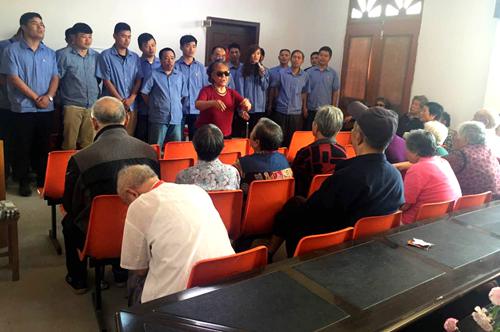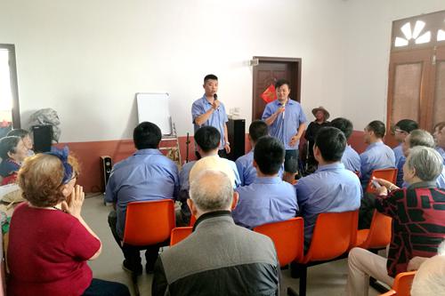 青年團(tuán)員將帶去的慰問品親自送到老人的手中,為老人們表演節(jié)目,和老人們拉起了家常,詳細(xì)詢問他們的身體狀況,了解他們的生活情況。老人們緊緊握著青年職工的手,鼓勵他們一定要珍惜來之不易的幸福生活,要團(tuán)結(jié)互助,勤勤懇懇的干好工作。
