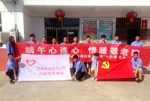 又是一年粽飄香,端午佳節(jié)倍思親。為發(fā)揚尊老愛老的傳統(tǒng)美德,使敬老院的老人們度過一個溫馨、快樂的節(jié)日,5月26日下午,第三水廠黨支部黨員、團(tuán)支部團(tuán)員帶著牛奶、粽子、日用品等專程來到連云港萬家樂老年公寓來看望孤寡老人,送去公司員工給他們的關(guān)愛之情。
