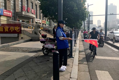 上午八時(shí)許,80名志愿者分成十個(gè)小組奔赴連云區(qū)十個(gè)交通繁忙路口,烈日炎炎下他們手持“各行其道、文明交通”字樣的小紅旗,每四人負(fù)責(zé)一個(gè)路口協(xié)助交警指揮疏導(dǎo)行人安全過(guò)馬路,勸阻、糾正行人和非機(jī)動(dòng)車駕駛?cè)说牟晃拿鹘煌ㄟ`法行為,幫助老弱病殘等特殊人群安全過(guò)斑馬線;顒(dòng)一直持續(xù)到中午11:30,志愿者們用自己的無(wú)私奉獻(xiàn)踐行著文明傳播者的活動(dòng)主旨,用微小的善舉傳播文明禮儀,成為東區(qū)百姓心中一道亮麗的風(fēng)景線。