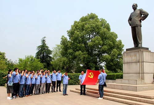 全體人員懷著無比崇敬的心情參觀了周總理紀(jì)念館,逐個展廳詳細(xì)了解周恩來總理不懈奮斗、無私奉獻(xiàn),全心全意為人民服務(wù)的光輝一生。各展廳所陳列的珍貴文物、文獻(xiàn)、照片等資料,讓參觀人員對周總理艱苦樸素的生活作風(fēng)有了更加直觀的感受。每到一處,大家都凝神駐足,仔細(xì)聆聽,認(rèn)真觀看,深刻感受到總理為黨為人民鞠躬盡瘁、死而后已的偉大革命精神;顒幼詈,全體黨員面對周總理銅像,在鮮紅的黨旗下重溫了入黨誓詞。