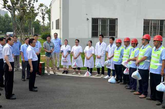 7月26日上午,市長項雪龍、副市長尹哲強一行來到第三水廠,代表市委市政府和全市人民,向冒著高溫辛勤工作的供水一線干部職工表示敬意和慰問。