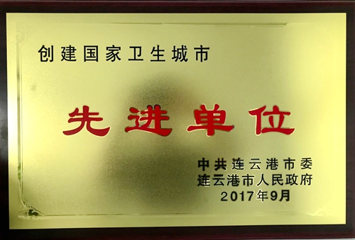 2017年9月,連云港市市委、市政府表彰全市創(chuàng)建國家衛(wèi)生城市先進(jìn)單位和先進(jìn)個人,第三水廠在全市創(chuàng)建國家衛(wèi)生城市工作中榮獲先進(jìn)單位榮譽稱號。