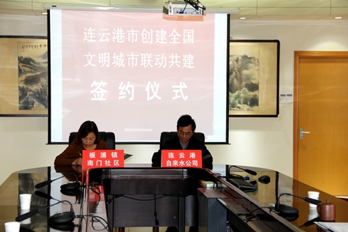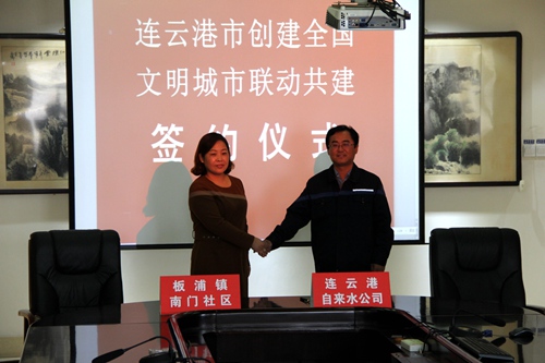 為進一步推動我市創(chuàng)建全國文明城市工作深入開展,加強上下聯(lián)動,形成整體合力,中共連云港市委辦公室和連云港市人民政府辦公室聯(lián)合下發(fā)《連云港市創(chuàng)建全國文明城市聯(lián)動共建實施意見》,將我公司與海州區(qū)板浦鎮(zhèn)南門社區(qū)結(jié)成共創(chuàng)全國文明城市對子。經(jīng)公司多次赴南門社區(qū)調(diào)研并與南門社區(qū)協(xié)商,征求社區(qū)意見,確定南門社區(qū)急需解決的問題,共同商定公司為南門社區(qū)鋪設(shè)板浦鎮(zhèn)南門社區(qū)東圩邊小街巷工程,以努力推動文明城市創(chuàng)建工作廣泛深入開展。2017年9月29日,根據(jù)兩辦《聯(lián)動共建實施意見要求》,雙方在連云港自來水公司簽訂了《連云港市創(chuàng)建全國文明城市聯(lián)動共建協(xié)議》。