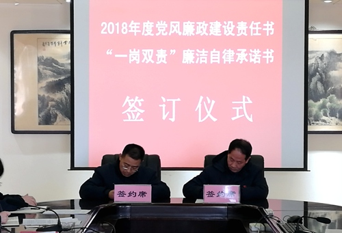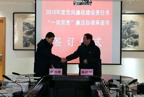 侯洪峰同志代表公司黨委分別與基層黨支部書記簽訂了2018年度《黨風(fēng)廉政建設(shè)責(zé)任書》。責(zé)任書對(duì)公司2018年黨風(fēng)廉政建設(shè)的目標(biāo)任務(wù)、責(zé)任范圍、責(zé)任內(nèi)容、責(zé)任追究等作出明確規(guī)定,保證公司黨風(fēng)廉政建設(shè)工作的貫徹落實(shí)。