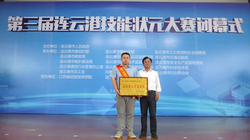 5月31日,第三屆連云港技能狀元大賽閉幕式在江蘇省經(jīng)貿(mào)技師學(xué)院報告廳隆重舉行,公司榮獲連云港市人民政府頒發(fā)的第三屆連云港技能狀元大賽“高技能人才搖籃獎”榮譽(yù)稱號。