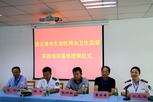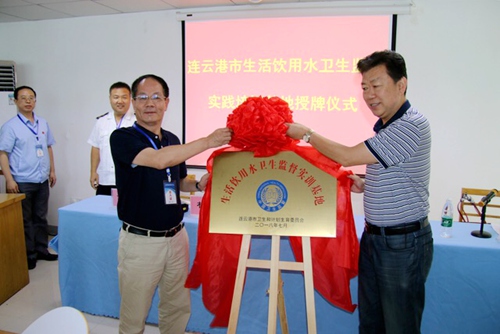 7月27日, “連云港市生活飲用水衛(wèi)生監(jiān)督實(shí)訓(xùn)基地”在第三水廠揭牌成立。當(dāng)天的揭牌儀式公司總經(jīng)理侯洪峰、副總經(jīng)理包偉共同參加,公司總經(jīng)理侯洪峰和市衛(wèi)生監(jiān)督所處長(zhǎng)張坤林共同為基地揭牌。