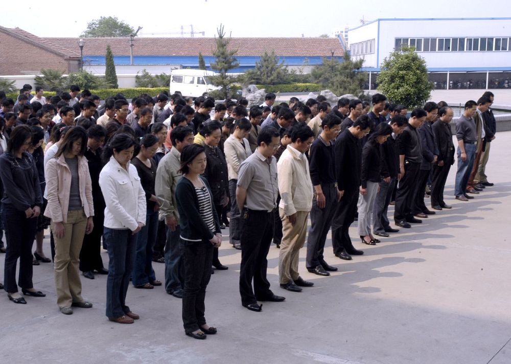 19日下午2時28分,公司全體員工為四川汶川大地震遇難者默哀3分鐘,汽車笛聲長鳴。