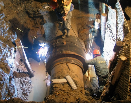 11月9日,天空中飄著蒙蒙細(xì)雨,港城大道蘇海肉聯(lián)廠附近通往東部城區(qū)的DN800供水主管線發(fā)生爆管,流出的水不斷涌上路面。市自來水公司第一時間組織搶修人員趕赴現(xiàn)場,為了不影響東部城區(qū)正常供水,實施不停水搶修,經(jīng)過13個小時的連續(xù)奮戰(zhàn),當(dāng)天晚上10時順利完成搶修任務(wù)。
