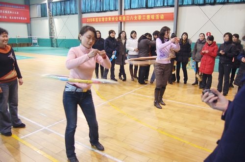 為迎接“三八”婦女節(jié)的到來,3月5日下午,公司在室內(nèi)球館舉行“迎三八”趣味運動會,來自機關和基層的130多名女職工,興高采烈地投入到蹲蹲樂、轉(zhuǎn)呼啦圈穿回形針等趣味比賽活動中。