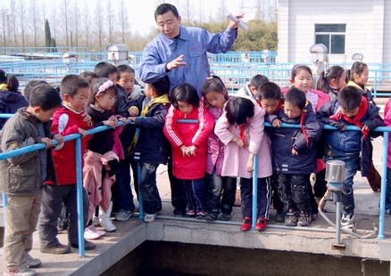 4月16日下午,港師一附小百名學(xué)生來到海州水廠,參觀制水工藝,接受節(jié)水教育。
