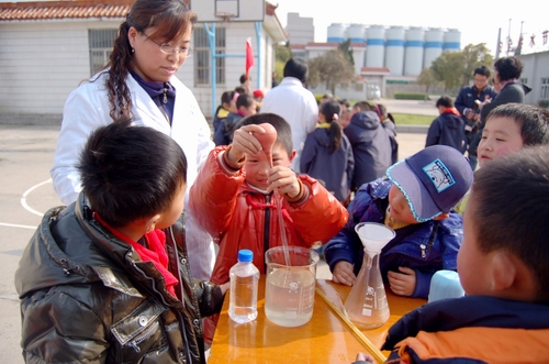 同學(xué)們參觀了取水口、一泵房、沉淀池、濾池、濾池以及二泵房,并自己動手,通過燒杯攪拌和漏斗過濾,模擬反應(yīng)沉淀池和濾池的運(yùn)行原理,親手將河水變成“自來水”。