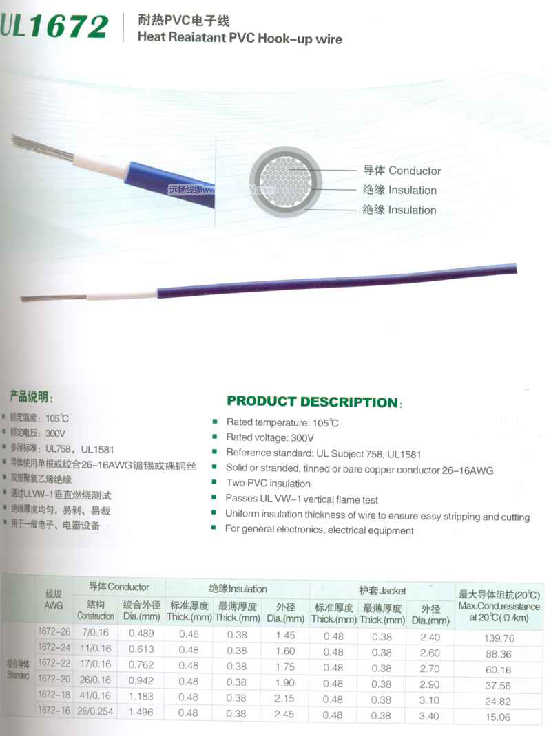 >> UL1672耐熱PVC電子線