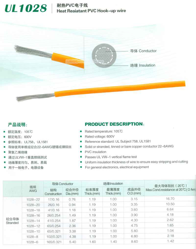 >> UL1028耐熱PVC電子線