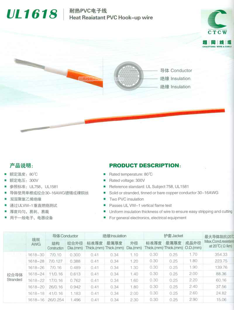 >> UL1618耐熱PVC電子線